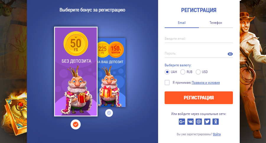 - бездепозитный бонус за регистрацию в виде 50 бесплатных вращений;
